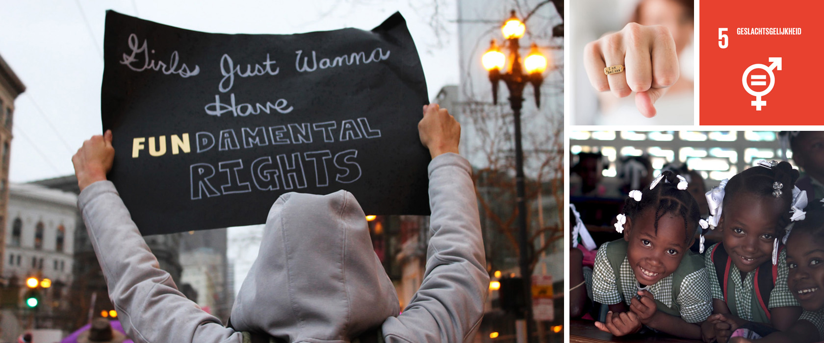 Het bereiken van gendergelijkheid en empowerment van vrouwen staat centraal in dit thema. Vrouwen moeten evenveel kansen als mannen krijgen om mee te beslissen in de politiek, economie en het openbare leven. Uitbuiting, mensenhandel en geweld, specifiek tegen vrouwen, moet stoppen.